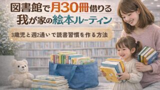 図書館活用 図書館で月30冊借りる我が家の絵本ルーティン|3歳児と週2通いで読書習慣を作る方法