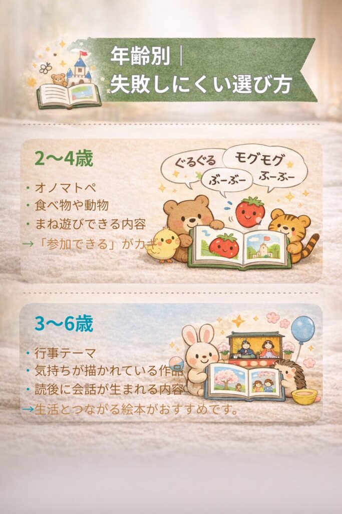 → 生活とつながる絵本がおすすめです。